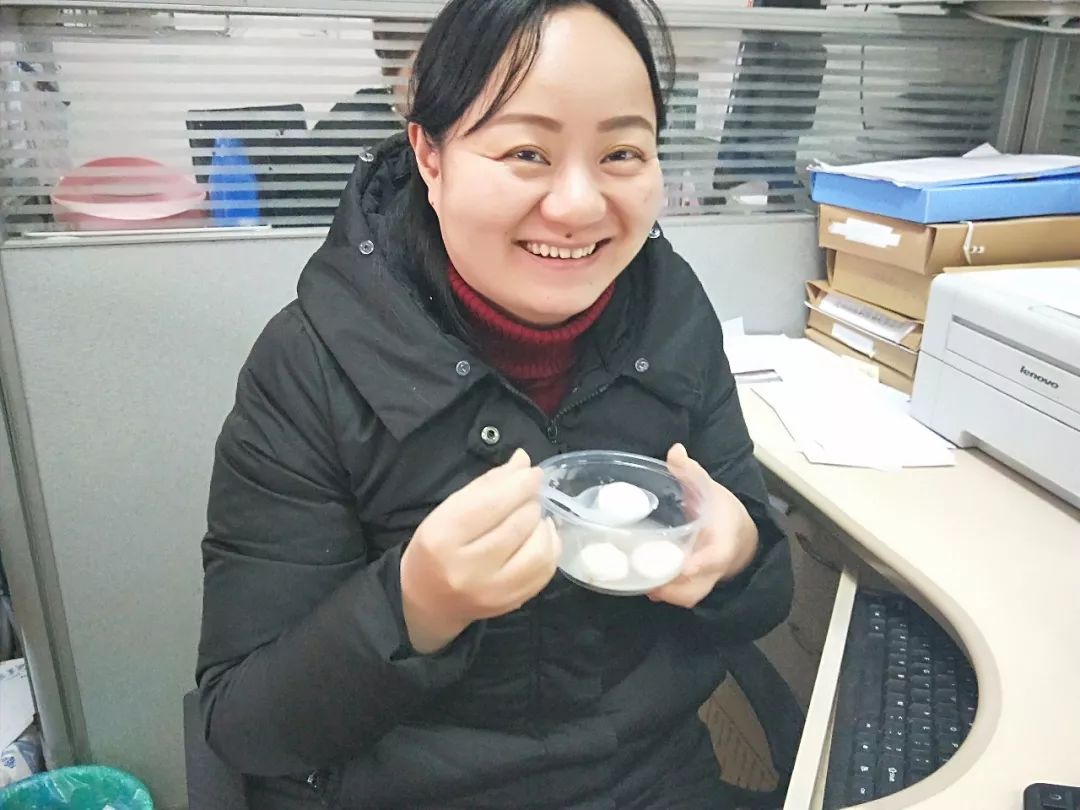 汤圆随着热水不停翻滚,芝麻汤圆独有的香味弥漫在整个公司。战友们一起吃着汤圆分享节日的快乐。金算盘人共享一份美食,共唱同一首《金色梦想》,共拼同一个未来。