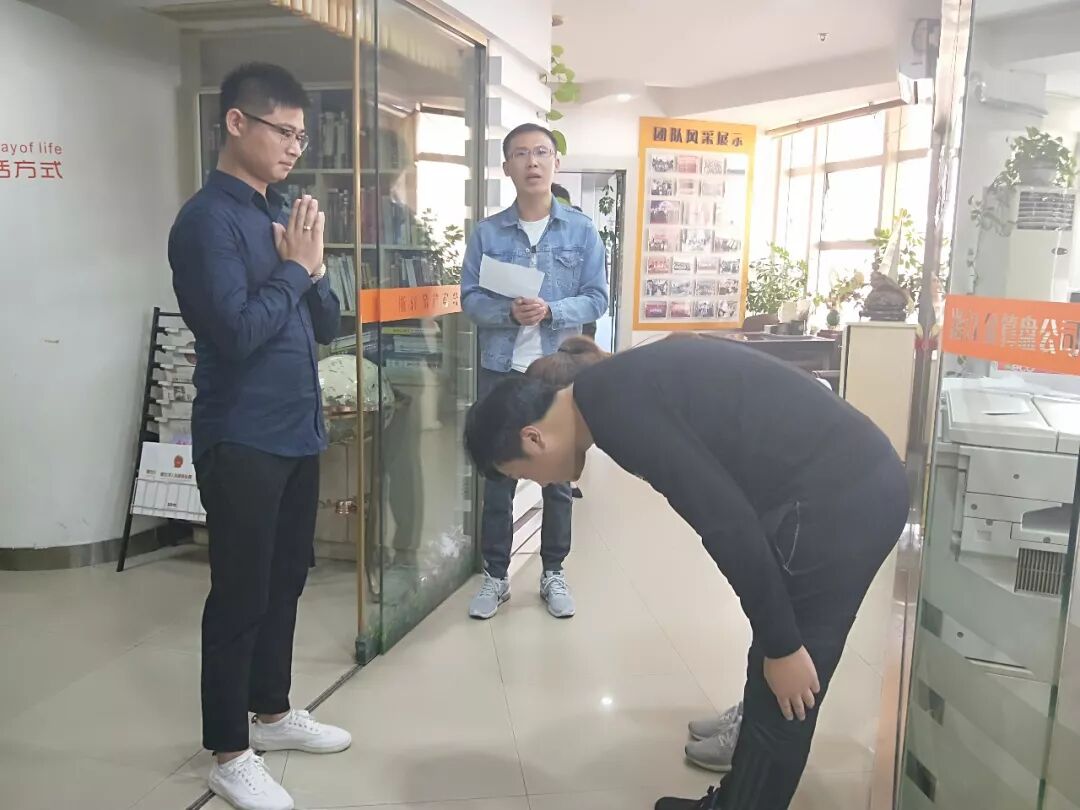 三鞠躬:感谢老师以及学生在接下来的工作当中一起相互辅助,我们师生情一路行